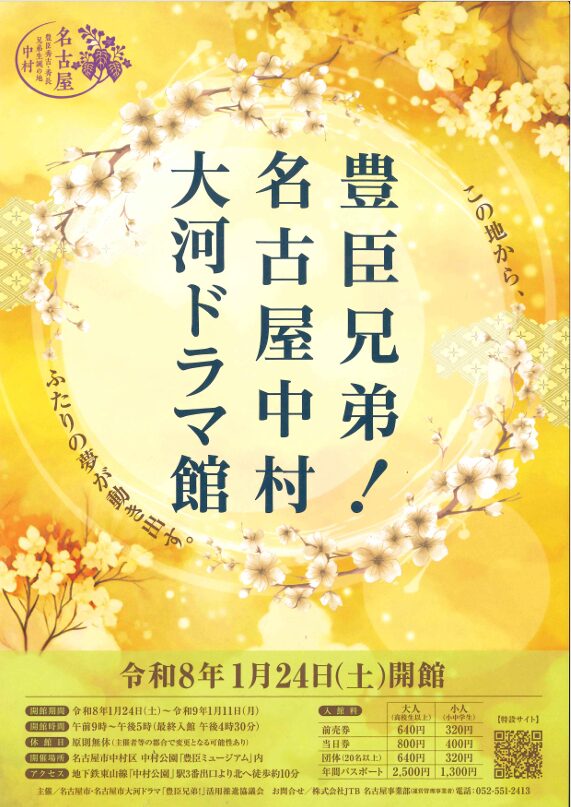 さて、当宿から歩いて約15分の中村公園内に大河ドラマ館「豊臣ミュージアム」が2026年1月24日(土)にオープンします!